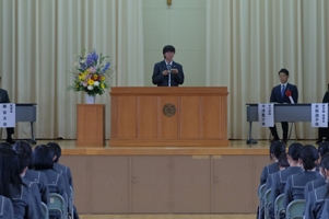 最後に、同校生徒会長の芳賀翔大さん(三年)が「学校生活や留学の経験から、本校の教えや聖書の言葉がより身近に感じられるようになりました。これからも学びを深め、実践できるように努力していきたい。先輩方がつくり上げてきた良き伝統を、仲間たちと共に支え合い、守っていきます」と、生徒代表の言葉を述べ、全員で校歌を歌って式典を締めくくった。(東寛樹)