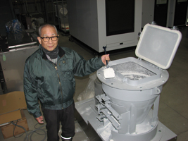 同社が開発した粉砕装置は幅百三十㌢×奥行七十四㌢×高さ百十㌢と比較的小型。