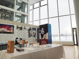 展示ブースはロビー奥、北彩都ガーデン鏡池プロムナードに面した明るい一角にあり、窓に向かってコの字型に立てられたパーティションの内側にパネルが掲示されている。ブースに隣接する休憩コーナーのテレビでは、三浦綾子関連の映像を見ることもできる。