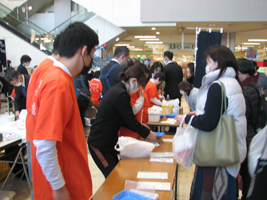 この製品販売会は年三回実施。六月と十一月は校内で、二月に校外で行っている。イオン旭川永山店での実施は、昨年に続き二回目。一週間前には同店に販売会のポスターを貼ってもらった効果もあってか、会場は多くの買い物客でにぎわった。