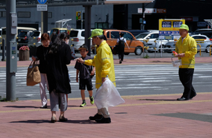 旭川地区ハイヤー協会(柏葉健一会長)が五日、JR旭川駅前広場とタクシー乗り場で、タクシーの利用促進を目的とした街頭啓発と清掃活動を行った。日本で、タクシーが誕生した一九一二年八月五日を「タクシーの日」と定めている。