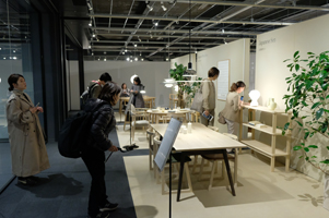 同組合専務理事の杉本啓維さんは、「この十年間で、旭川家具の約七割が道産広葉樹で作られるようになりました。節があったり色や木目にムラがあったりする素材は従来、家具に使われて来ませんでしたが、近年はその自然の木材らしさが付加価値としてマーケットに受け入れられるようになったのも理由の一つでしょう。今回の展示を通して道産材に興味を持ってもらい、身近にある森林についても理解していただけたら」と来場を呼びかける。