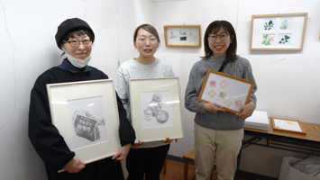 岩崎さんは「あさひかわ新聞がつないでくれたご縁で、今三人が仲良くできてうれしいです。作品からそんな私たちの楽しげな雰囲気を感じていただけたら」と笑顔で話した。