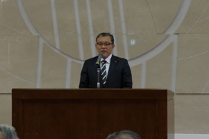 続いて、来賓のあいさつで、今津寛介市長が「最近は、道道の除雪が市の作業とのタイミングが合わないので改善してほしいという意見があるため、国・道と結んでいる連携協定の中で声をあげていきたい。今年の冬も皆様と連携して、除排雪作業の先に、市民の笑顔があると信じて、取り組みを進めていきたい」と述べた。