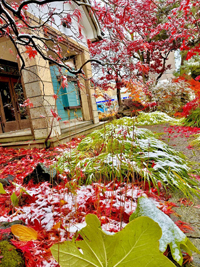 一九三三年(昭和八年)に、酒造会社「北の誉」のオーナーの自宅として建てられた和洋折衷の住宅は庭の紅葉の美しさから「紅葉館」と呼ばれた。現在は動態保存建築物として、そばと料理の店「おかだ紅雪庭」として営業している。その建物や庭の美しさをテーマにした写真コンテストは十一回目。
