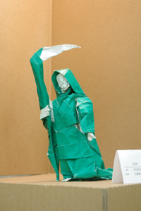 幼稚園や小学生の頃から折り紙を続けている二人が作る作品は、複数の折り紙を組み合わせる「ユニット折り紙」ではなく、一枚の紙を折って作り上げるもの。一枚から作品ができることに大きな魅力感じているという広瀬さんは、もともと工作が好きで、小学四、五年生くらいから立体的な折り紙作品を作り始めたそう。五十㌢四方の大きな紙を使った難易度の高い「死神」を、前回の展示会のために五~六時間かけて作りました。