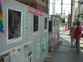 同支部は、毎年この時期に悲惨さを伝える「原爆展」を開いており、この絵の写真展は今年で二回目。支部会員の一人は「台湾の家族連れの旅行者が展示している絵を見て、胸に手をあて『心が痛い』と言っていました」と話した。