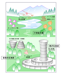 市内にある施設を活用した夢のような構想を示すことで、市民が市内にも良い場所があることを再認識し、まちづくりに興味を持ってもらうのが目的。今回は、南が丘ゾーン(旧北海道伝統美術工芸村)に新・道の駅や複合型ホテルを建設、忠和の丘ゾーン(旧東海大学旭川キャンパス)には、昆虫館や水族館、植物園などファミリー向け施設を造成し、二つのゾーンをロープウエーで結ぶ「GREENN VILLEGEあさひかわ」構想のほか、「21世紀の森」を中心とした、持続可能な森づくり構想について、鳥瞰図やパース、立体模型などを使って展示します。