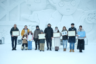 あさひかわ新聞が行う旭川冬まつりの市民小雪像コンテスト「勝手にあんたが大賞!」の表彰式が八日、大雪像ステージで行われた。