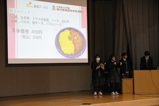 同校商業科の課題研究の一環。昨年度まではスイーツ開発を行っていたが、今年度は道北アークス側から提案もあり、新たにお弁当作りにも取り組んだ。