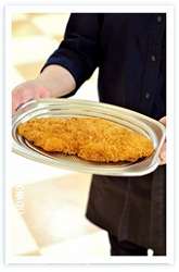 そして嬉しいことに、そこで売っている揚げ物。ものすごく大きなチキンカツ。これなら二人で食べられそう。家でキャベツの千切りをすればOK。しかも二百円です。大きなエビフライもありますよ。