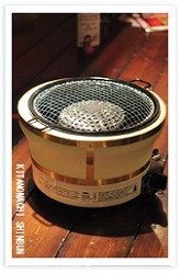 たまに通る道に新しいお店を発見。ランチもあるみたいなので、素通りはできません。入ってみると、とてもきれいな高級七輪を発見。でもガス管が付いている。聞くと美味しく焼けるそうだ。