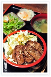五百円のランチにはみそ汁、ミニサラダ、漬物がセットでつきます。人気の「ミックス丼」=写真=をいただきました。食べる前から「五百円でいいの ですか?」と聞きたくなるくらいのボリュームと美しいお肉。牛サガリとカルビの柔らかいこと! そしてなんとも美味しい味付けとご飯に浸み込んだタレ。極上の牛タンを味わっているような――。さらに美味しいみそ汁。キャベツは和寒の雪の下(期間限 定)。大満足で完食です。