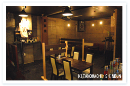 店内はカウンター席とテーブル席で約三十人収容可能です。今年で七年目を迎え、四月からはランチも始めました。開始以来、ランチどきにはビジネスマンやOLの間で評判になっています。