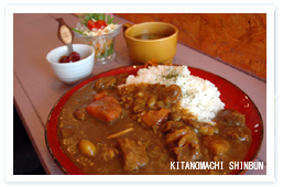 メニューは三種類の日替わりランチ(五百円)。内容は来店してのお楽しみ。そして毎週金曜日は人気の「カレーの日」です。取材した日は、たまたま金曜日、カレーの日ということで「牛すじのカレー」をいただきました。