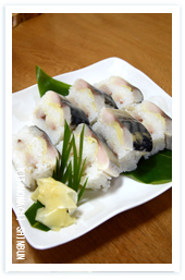 まずは一口。肉厚の鯖のしめ加減が最高です。秘密はレモン。ご主人が一番気を使うところだそうです。鯖の後にガリのコリッという歯ごたえが、なんとも良いアクセントです。さすがご夫婦で試行錯誤を繰り返したという逸品です。