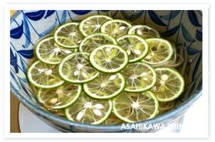 注目は、神社の茅の輪くぐりを楽しむような小ねぎの冷がけ蕎麦(九百円)、スープカレーのようなスパイシーにしんそば(千百円)、すだちがびっしりそばを埋め尽くすすだち蕎麦(九百九十円)、とまとそば(同)などの変わりそば。「守るべきは守り、破るべきは破り、みんなが楽しんでくれれば僕たちも楽しくなる」と豊島さん。