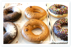 中心はドーナツ。チョコミルク、いちごミルク、メイプルシュガー(各百六十二円)、カフェモカ(二百五円)、コーヒーチョコレート(二百十六円)など、定番に季節限定品も加えてなんと五十種類ほどもある。