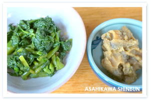 飾りいなりとともに買い求める人が多いという総菜も、充実している。枝豆、コーン、白滝、レンコン、豚ひき肉など八種を詰め込んだ具たくさんきんちゃく(百五十円)、白だしからあげ(五個二百五十円)などのほか、日替わりでミニ総菜もある。訪れた日は、大(二百円)がイカフライとマカロニサラダ、キンピラ、小(百円)が菜の花の辛し和え、フキノトウ味噌など。どれもこれも、安価なのがうれしい。取材するたびにしょっちゅう思うのだけど、こんな店が自宅近くにあったらいいな。