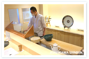 旭川では数少ない天ぷらの専門店として、三月に開店したばかり。店主の鷲見篤史さん(40)は、調理学校を卒業後、老舗和食店の花まる亭に入り、同店一筋で約十五年間腕を磨いてきた。しかし、同店が閉店することになり、料理長だった鷲見さんが独立する形で引き継いだ。