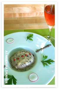 大根のトリュフソース(七百円)をいただいてみた。ダイコンはなんと三日間もとろとろと煮たもので、これに自家製のトリュフ入りホワイトソースがかかっている。まさか、ダイコンがこんな料理になるなんて驚き。ここまで来れば、洋風と言うよりフレンチおでんと言ってもいいぐらい。