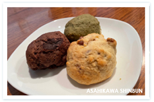 同店ではコーヒーにぴったりのお菓子やパンも取り扱っている。市内外からやってくるパンやお菓子のほか、店で作っているのはスコーンやケーキ。「ケーキは季節ごとに何種類か作っているんですが、常時出しているわけではないので、巡り合えたらラッキーです(笑)。人気なのがチーズケーキで、これは一週間前に注文を貰えれば用意できます」とのこと。また、スコーンは来年から小麦粉から米粉に材料を変更する予定だという。今現在のスコーンもとても美味しいが、リニューアル後の味も楽しみだ。